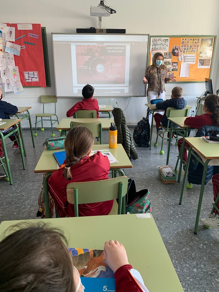 Los alumnos de 5º EP han recibido una charla sobre Bulling. Doña Amalia Rodríguez, psicóloga sanitaria y profesora del Colegio les ha explicado qué es el bulling, los distintos casos y actores que intervienen (agresor, víctima y observador).