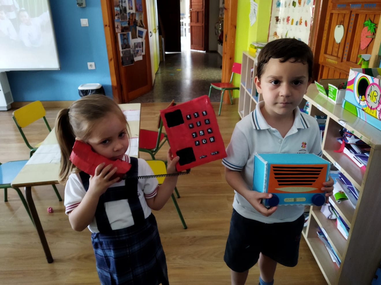 Nuestros alumnos, muestran felices sus inventos, inventos que han realizado con la ayuda de sus papás.