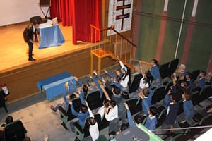 Actuación para Educación Primaria y Secundaria plagada de guiños a la ciencia y con una buena dosis de humor, donde también nos han acompañado el colegio @santateresabadajoz y @santoangelbadajoz.