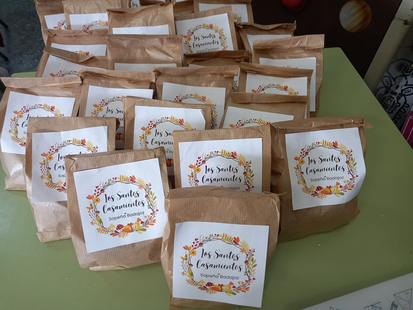 Por último, han elaborado unas bonitas bolsas de papel donde se han llevado casamientos a sus casas y así poder compartir este día en familia.