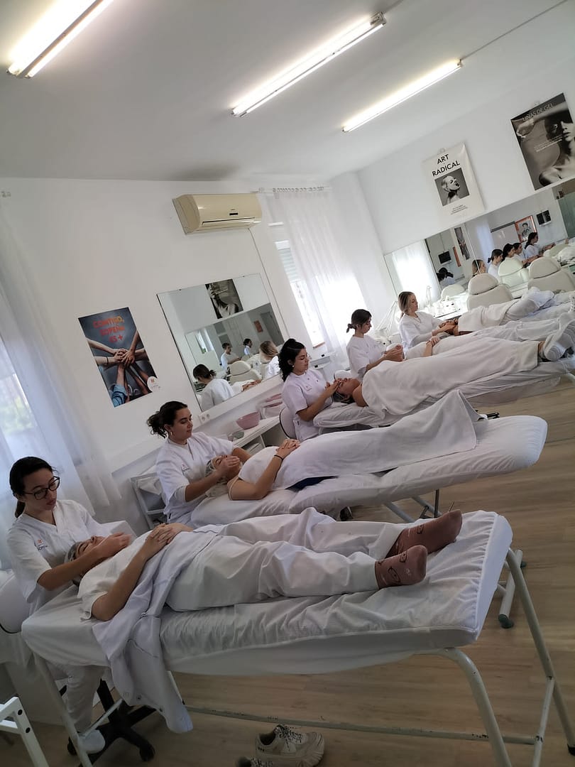 El alumnado de 1º de Estética y Belleza comienza a realizar sus primeros masajes faciales.