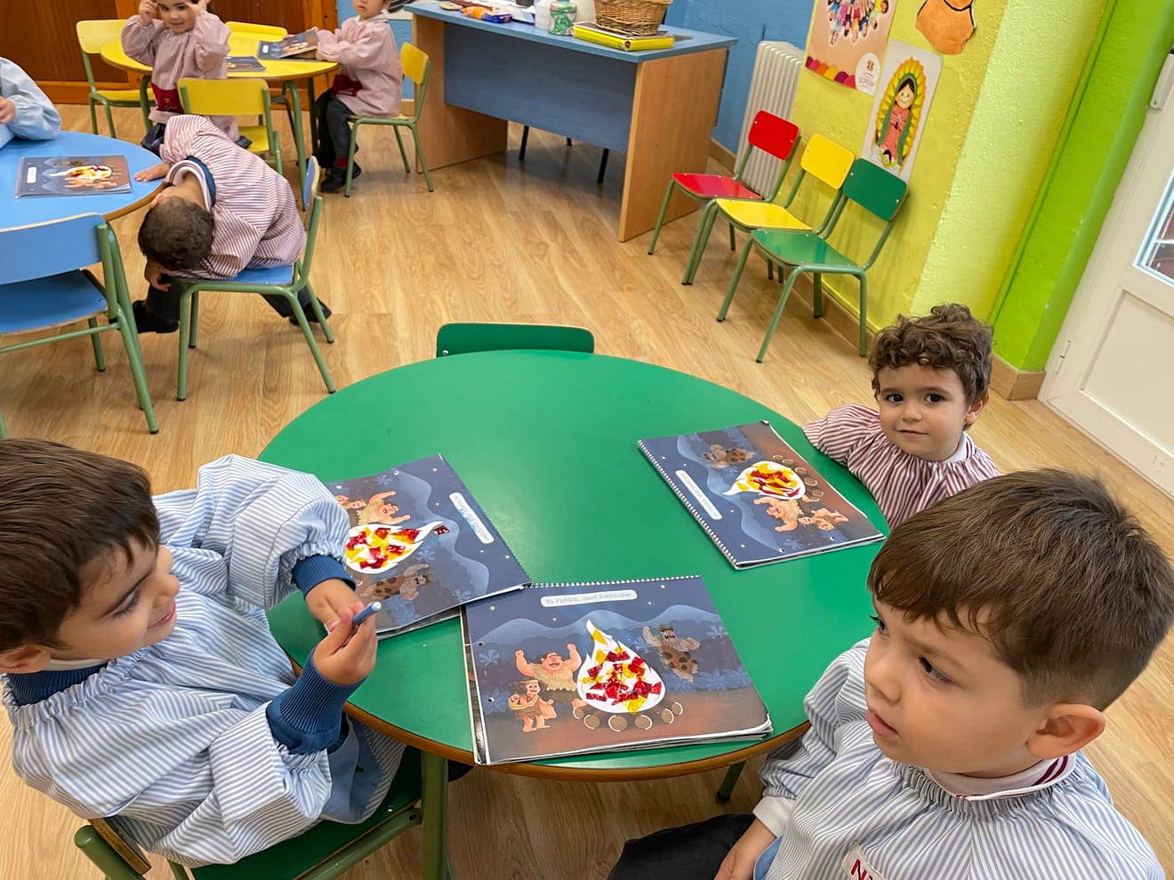 Trabajamos nuestro proyecto «En las Cavernas» donde estamos investigando sobre los animales que convivían con el ser humano y los que ya se habían extinguido cuando éste comenzó a poblar la tierra.