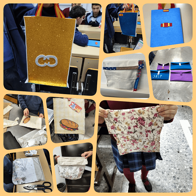 Para ello, los alumnos de 2º y 3º de ESO han diseñado y elaborado, en clase de Tecnología, unas bolsas de tela que pueden utilizar para traer el bocadillo o merienda que se toman en el recreo. De esta forma incentivamos a los compañeros de la etapa, para que, no haya residuos, o al menos, los mínimos posibles.