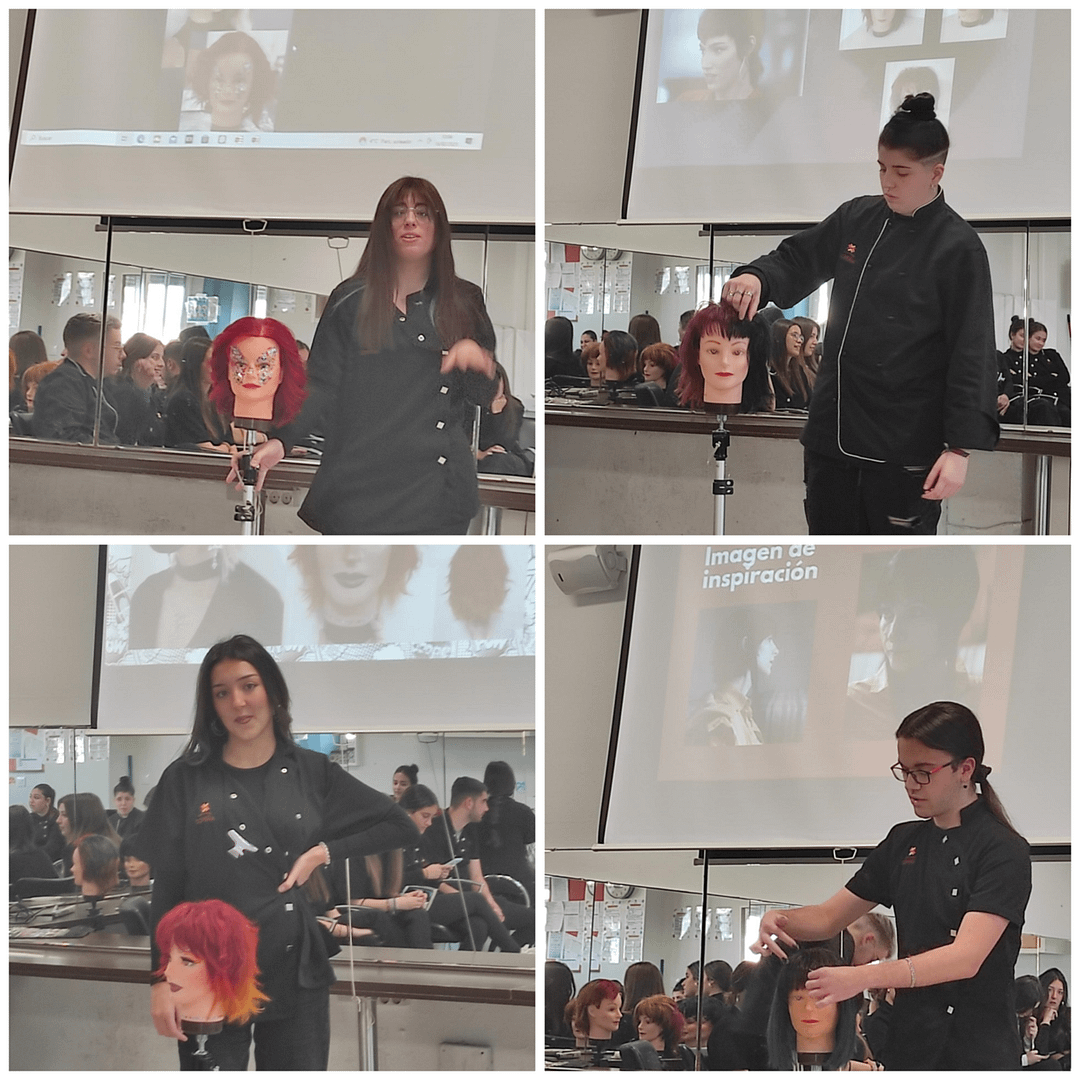 Nuestros alumnado del CFGM de 2º Peluquería, han realizado una exposición de su proyecto final de curso, aplicando todas las técnicas de corte y color aprendidas a lo largo de todos estos meses. Sin duda, han desarrollado una gran creatividad y entusiasmo en todos sus trabajos, desde estilos de corte Mullet, Bob, cortes texturizados para crear movimiento, cortes asimétricos… Hasta diferentes técnicas de coloración de fantasía bicolor y tricolor, todo esto tras un previo proceso donde han disfrutado muchísimo..