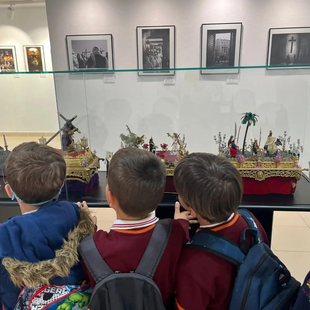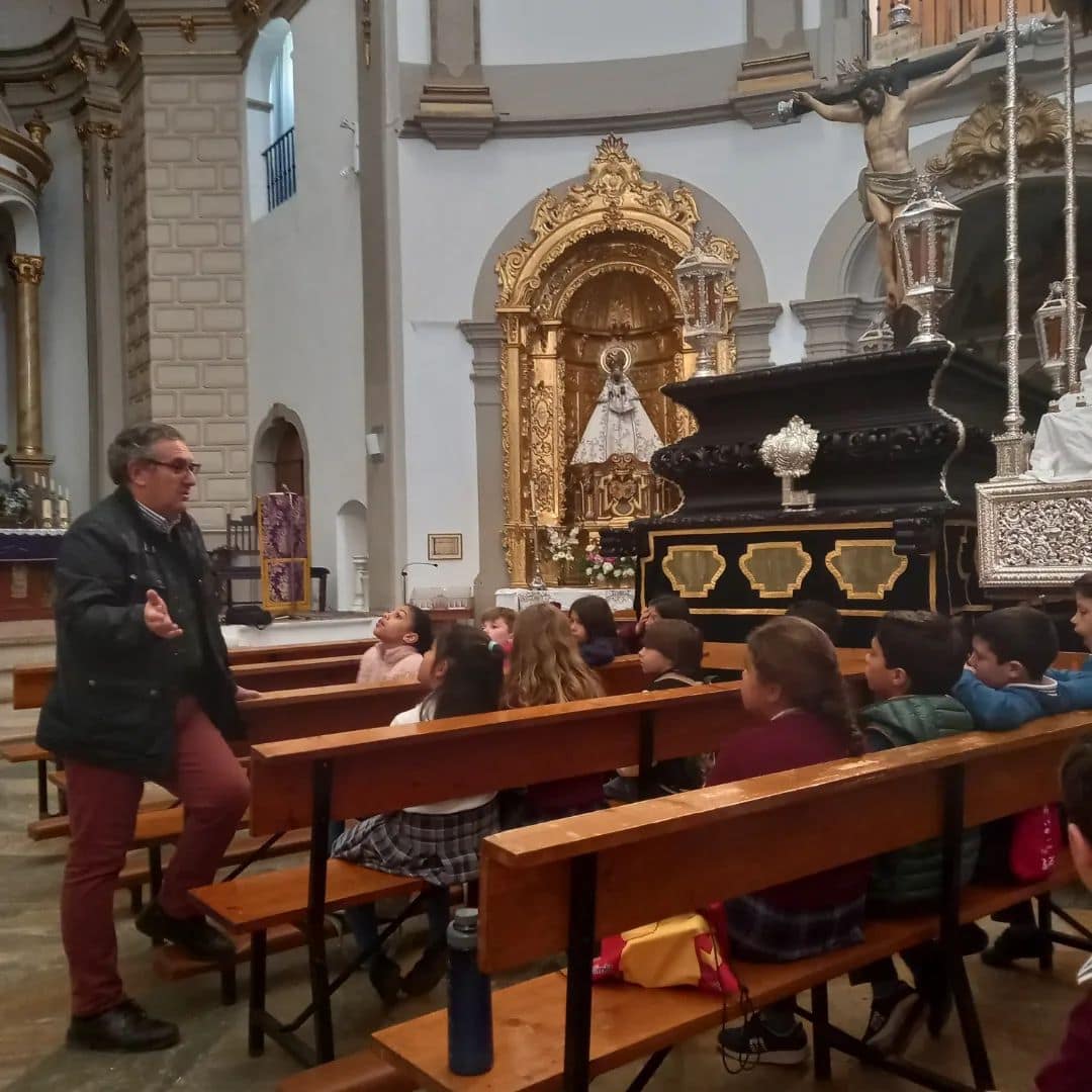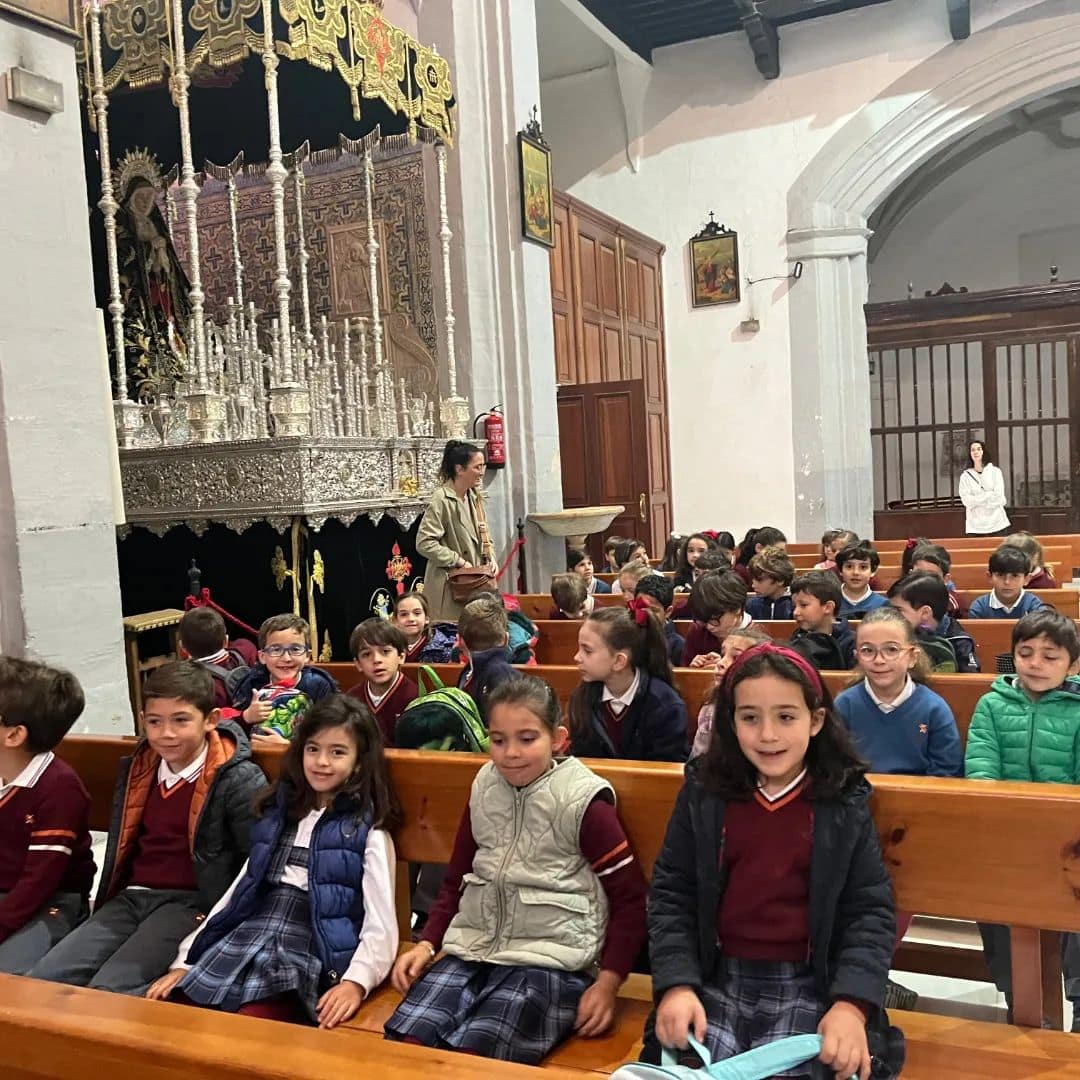 El alumnado de Primaria visita algunas de las Hermandades de la ciudad, descubriendo su origen, el patrimonio artístico y cultural, las acciones solidarias que realizan e impulsan durante todo el año, cómo se preparan y todos esos detalles que pasan inadvertidos cuando vemos las procesiones en la calle.