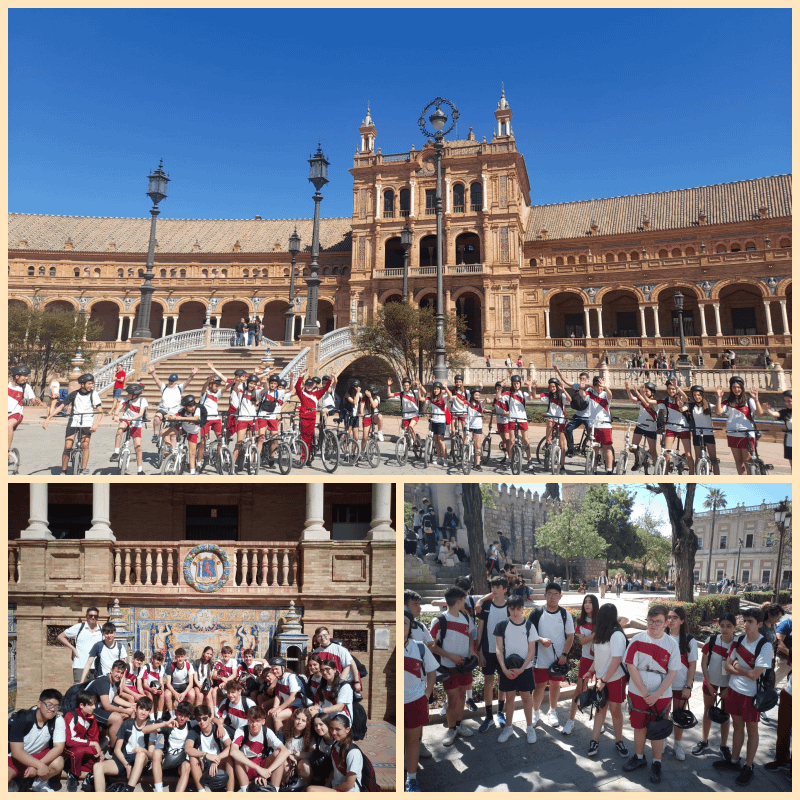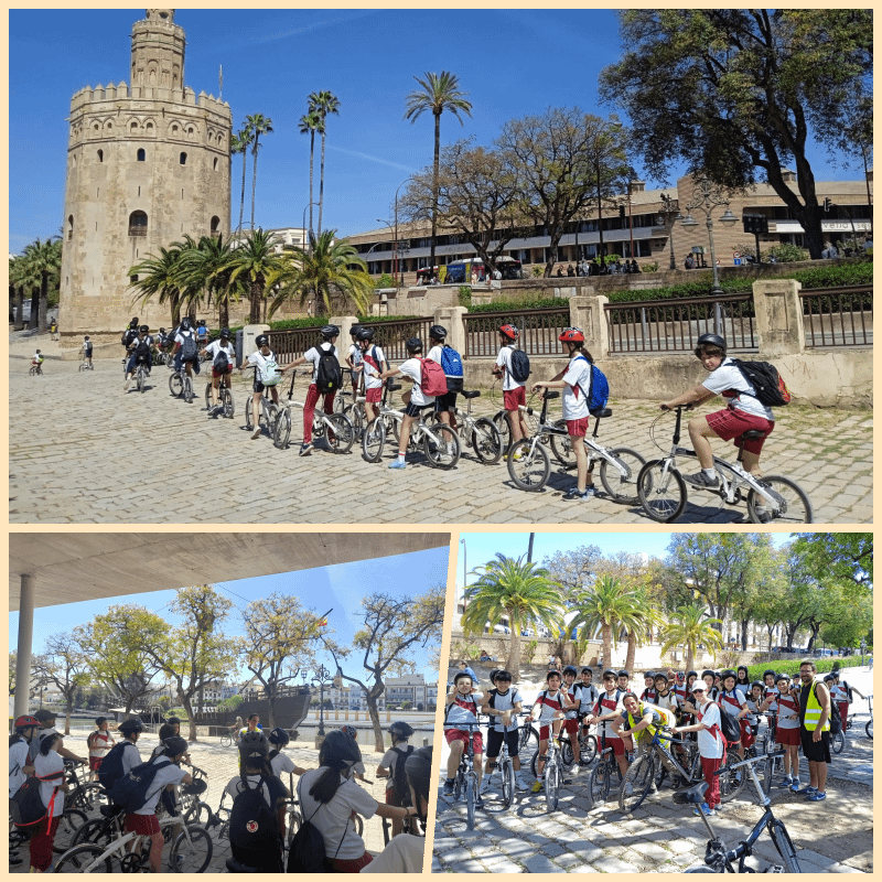 ¡Sevilla, la hermosa ciudad andaluza, ha sido testigo de un día maravilloso en bicicleta, por parte de un grupo de alumnos del colegio! Los chicos y chicas de 1º, 2º y 3º de ESO disfrutaron, durante la mañana del 30 de abril, de un recorrido por algunos de los monumentos más significativos de la ciudad, mientras pedaleaban por sus parques, calles y avenidas.