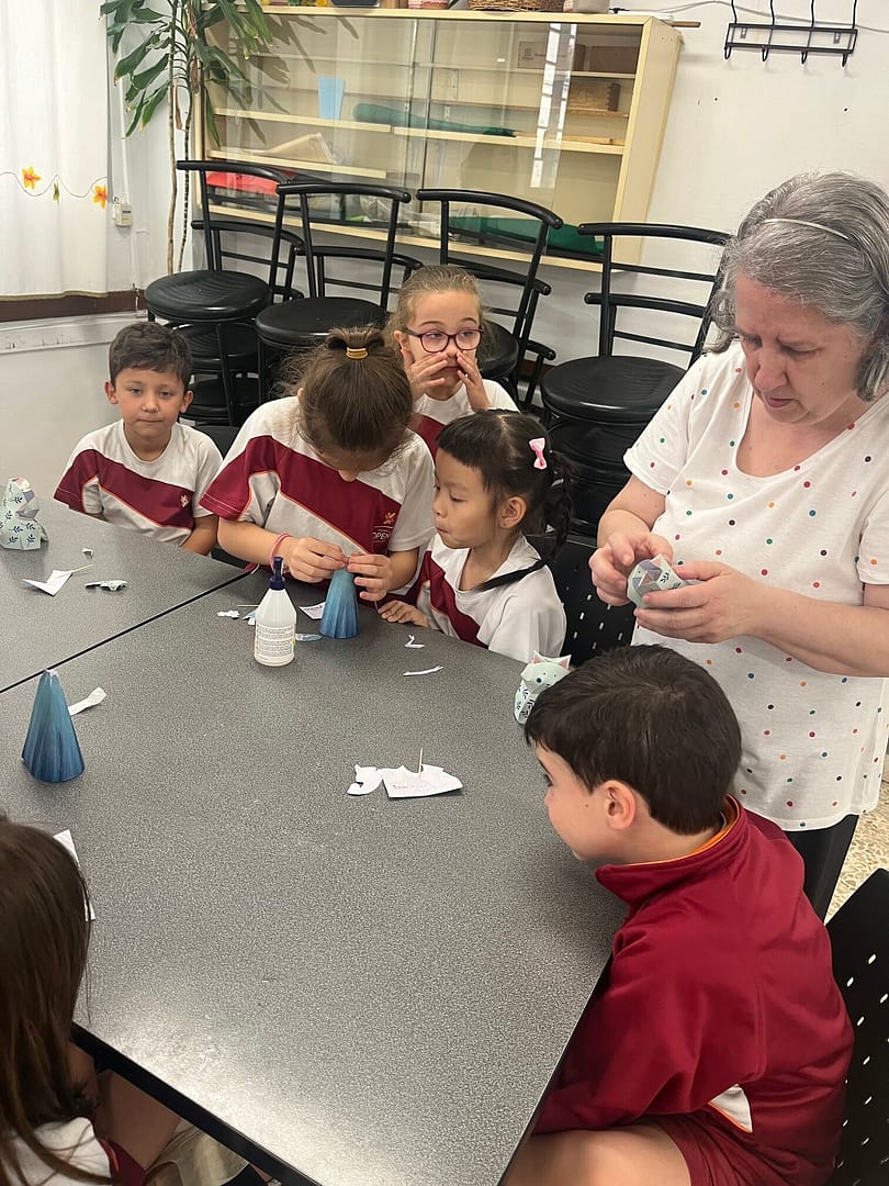 Los alumnos del primer ciclo del colegio han realizado hoy en colaboración con el centro de mayores de La Paz un taller de paper craft. Han aprendido a construir diferentes tipos de figuras con papel.
