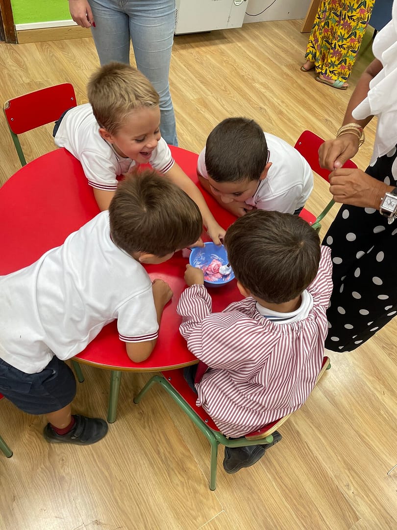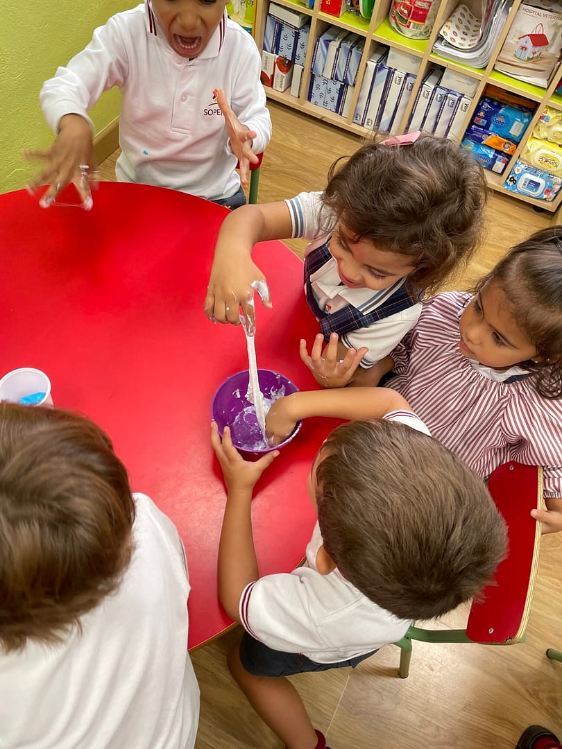 El alumnado de infantil realizó un experimento educativo, CREAMOS SLIME DE COLORES.