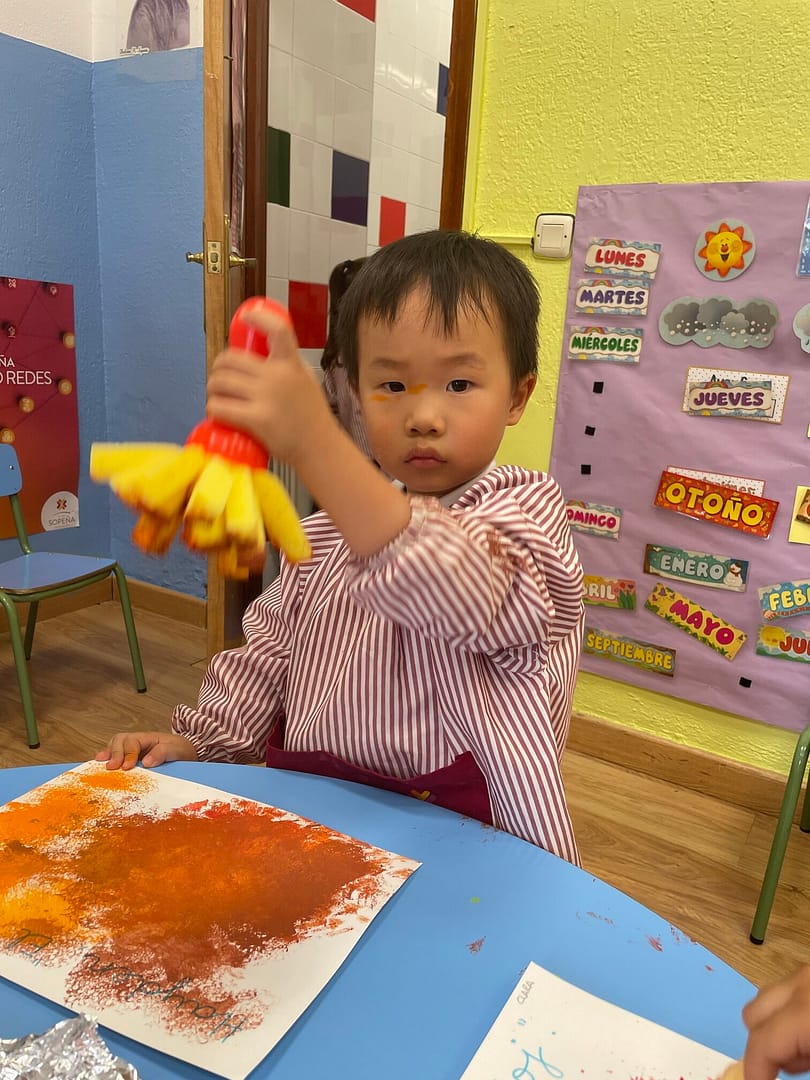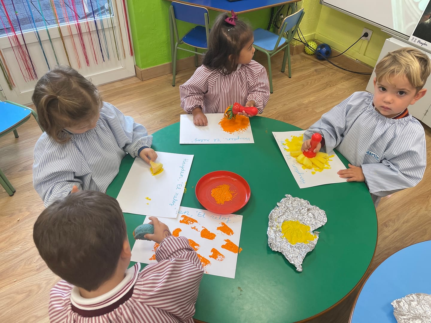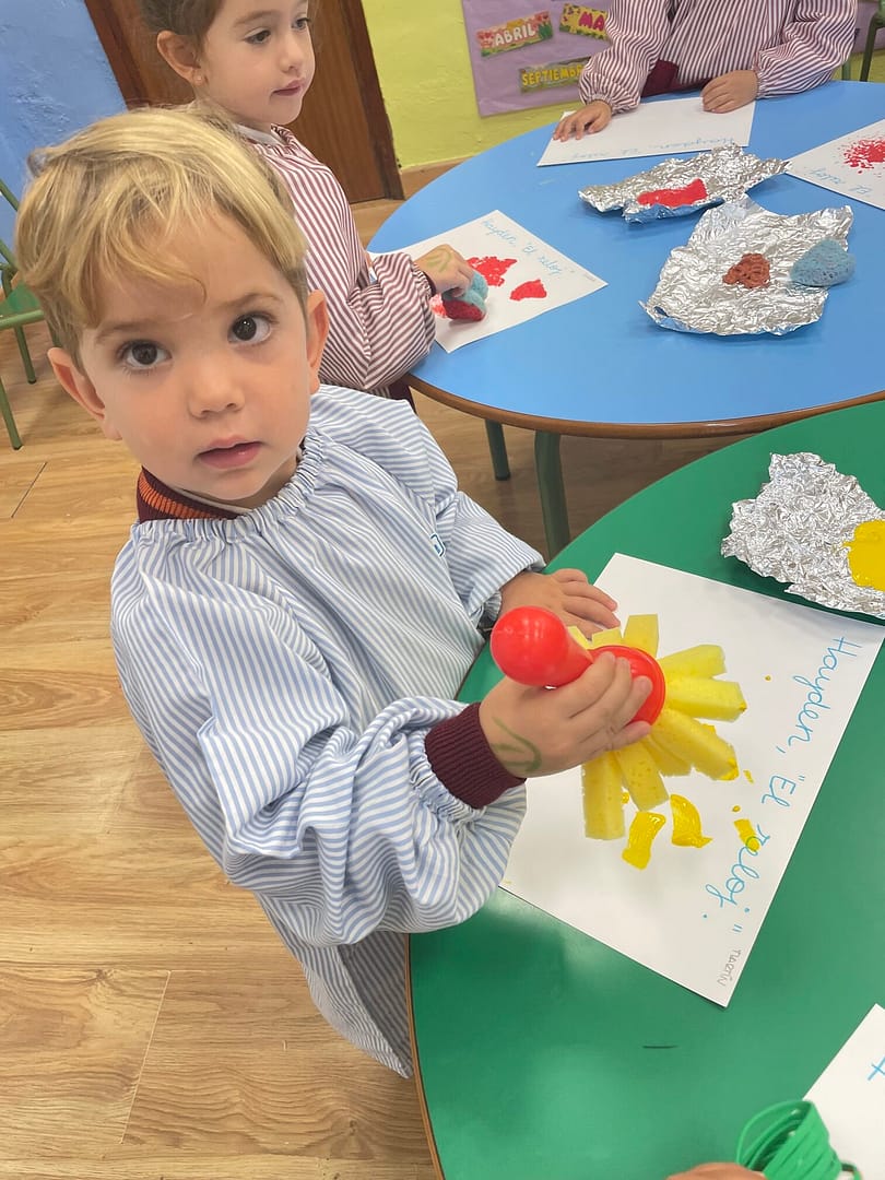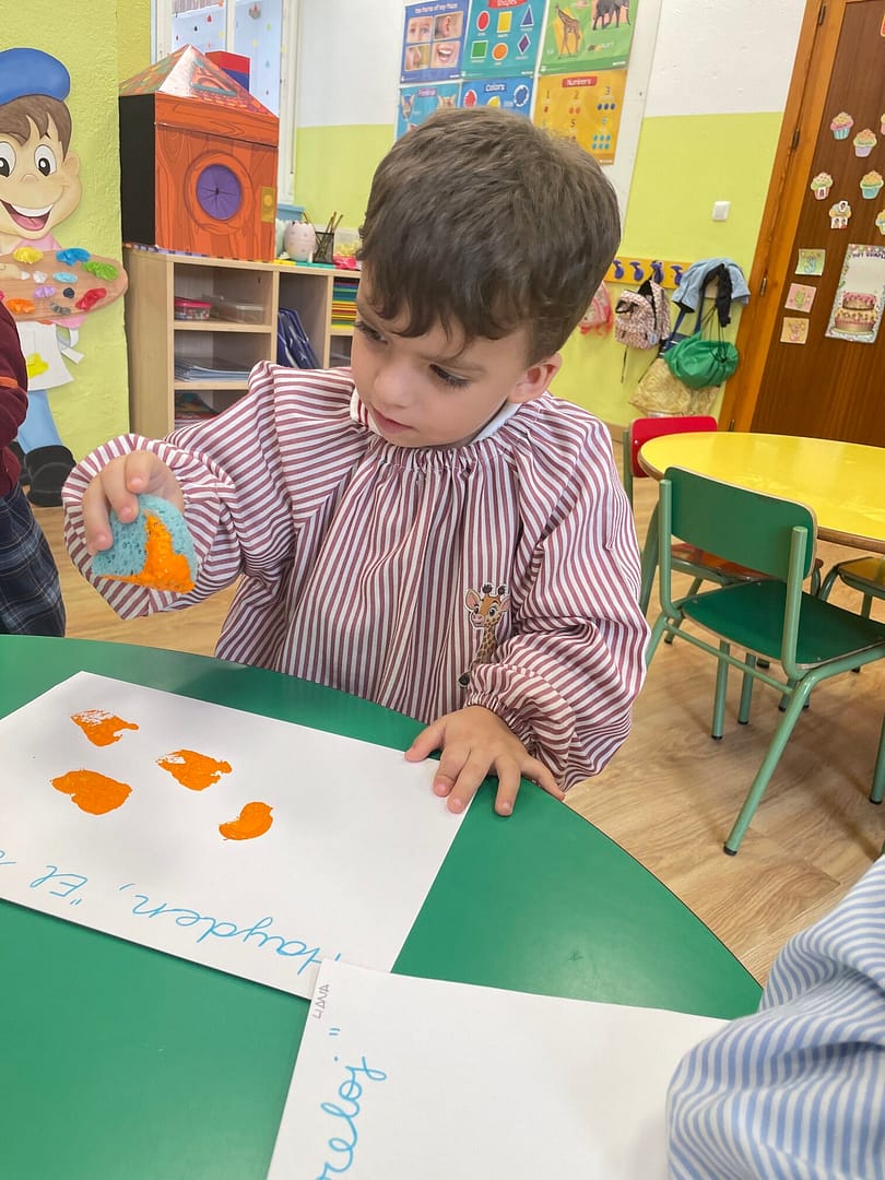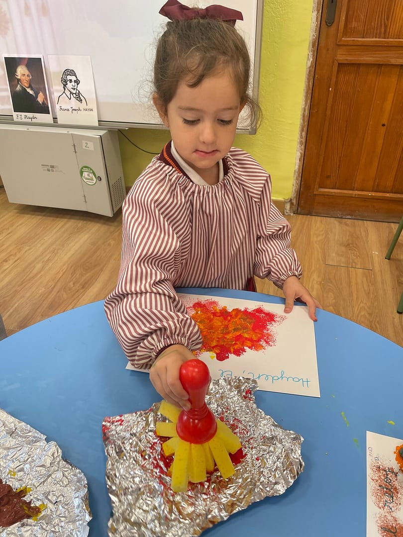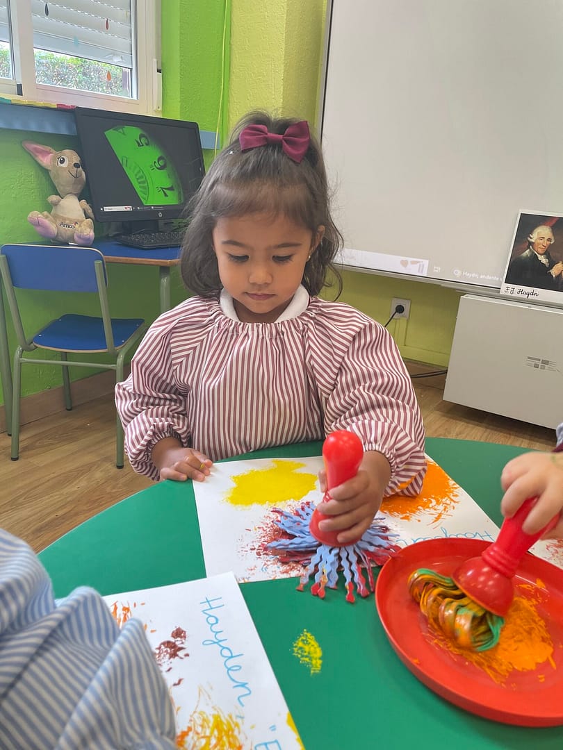 En el aula de 3 años estamos descubriendo a Joseph Haydn. Escuchamos su melodía de «El reloj», y plasmamos toda nuestra creatividad y los sentimientos que nos aflora al escucharla a través de la estampación.
