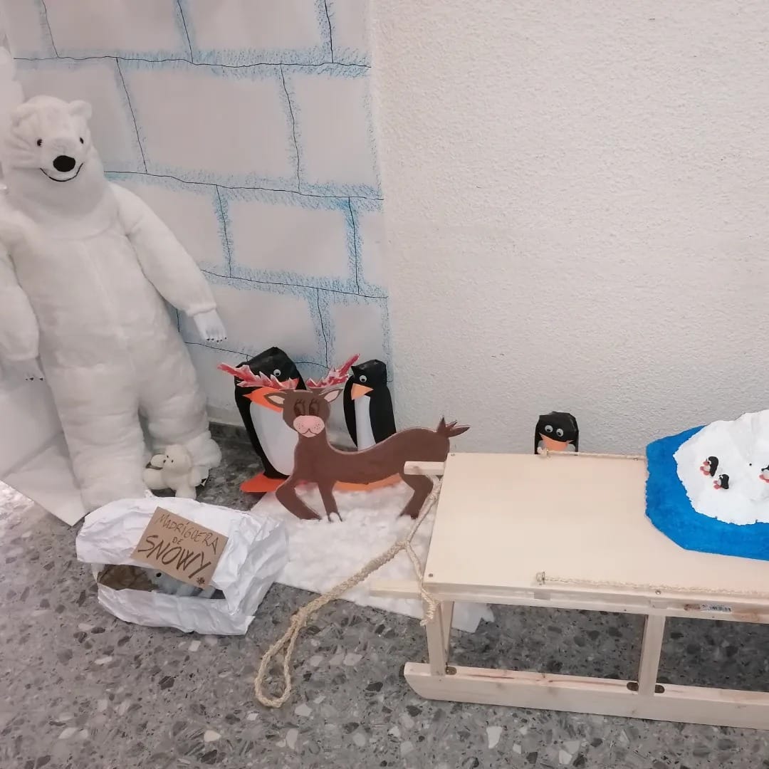 Tanto es así que las familias en la colaboración para decorar el aula y convertirla en un campamento Inuit han recreado una aurora con los colores propios y formas onduladas.Si tú también quieres formar parte de estos proyectos y descubrir el Polo Norte