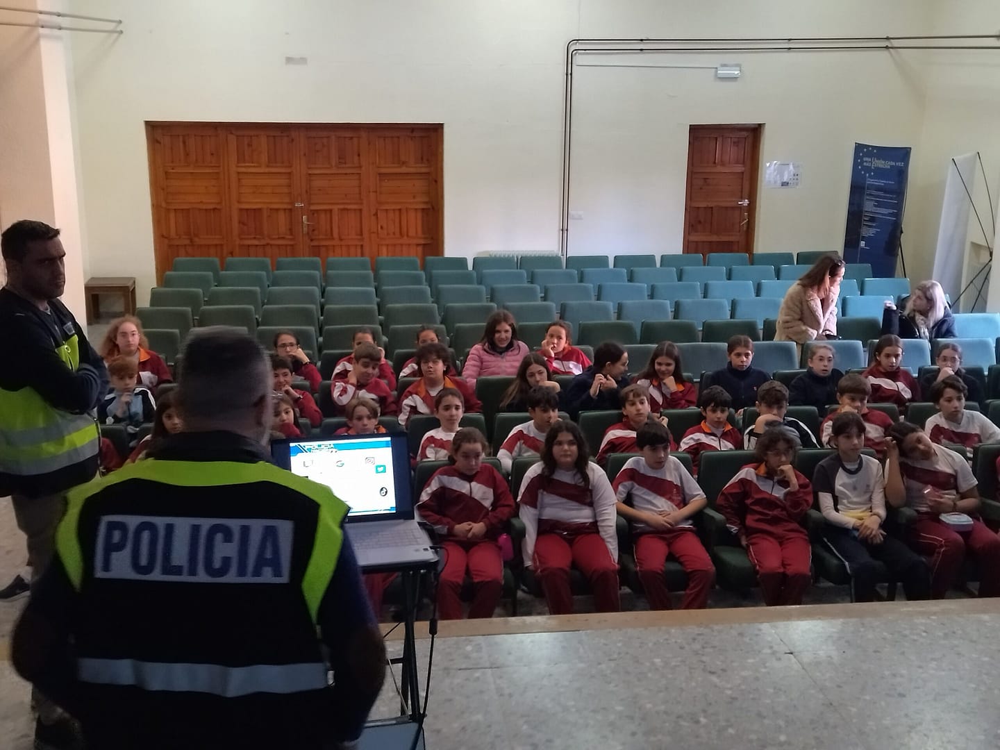 El alumnado de 5º y 6º de Primaria ha recibido la visita de la Policía Nacional, concretamente de expertos en delitos tecnológicos, para explicarles los riesgos presentes en Internet, tanto en webs y juegos como en aplicaciones y redes sociales.