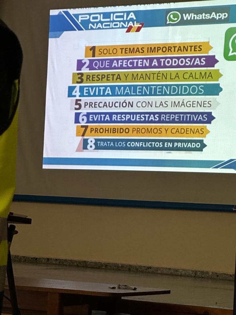 De manera muy práctica han ido abordando diferentes situaciones que los alumnos/as se encuentran al usar internet, y las consecuencias que tienen las actuaciones que realizan al navegar por la red. Agradecemos a la Policía Nacional, en especial a Raúl y José, su presencia y su tiempo.