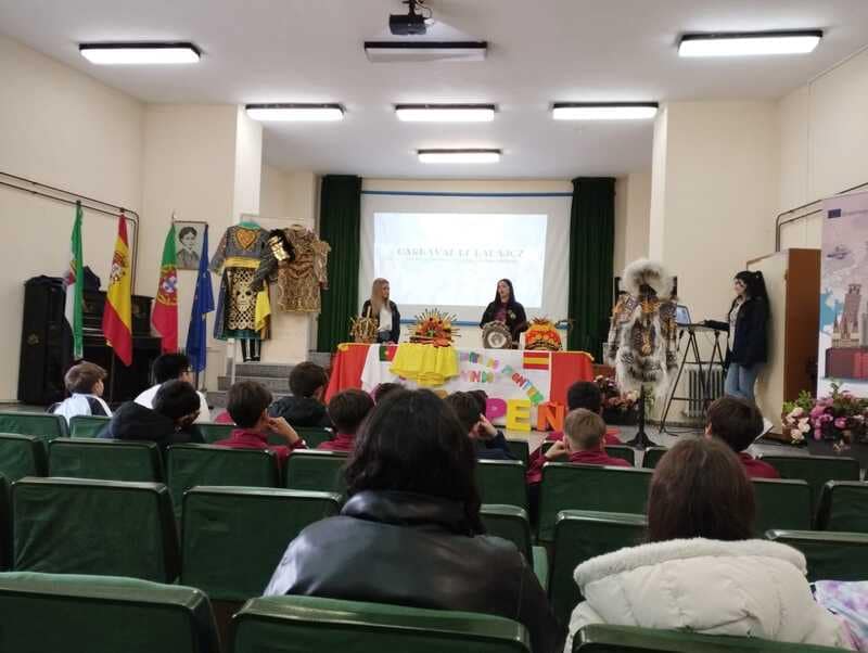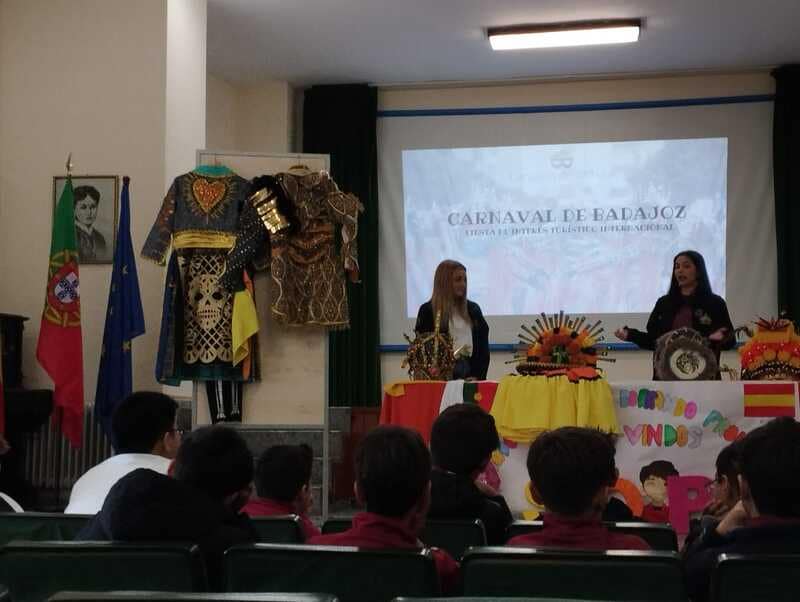 Durante la jornada del día 29 de febrero, se realizaron una serie de actividades para fortalecer la competencia plurilingüe (Darla bienvenida a través de una canción “As Pontes” del grupo folk Acetre, Vídeo promocional de Destino Eurobe, Conferencia a cargo de D. Miguel Silva (Diseñador gráfico de la empres Cafés Delta), una visita guiada en portugués por los sitios mas emblemáticos de Badajoz y terminaremos la jornada con diferentes actividades lúdicas potenciando la convivencia – convívio entre los alumnos.